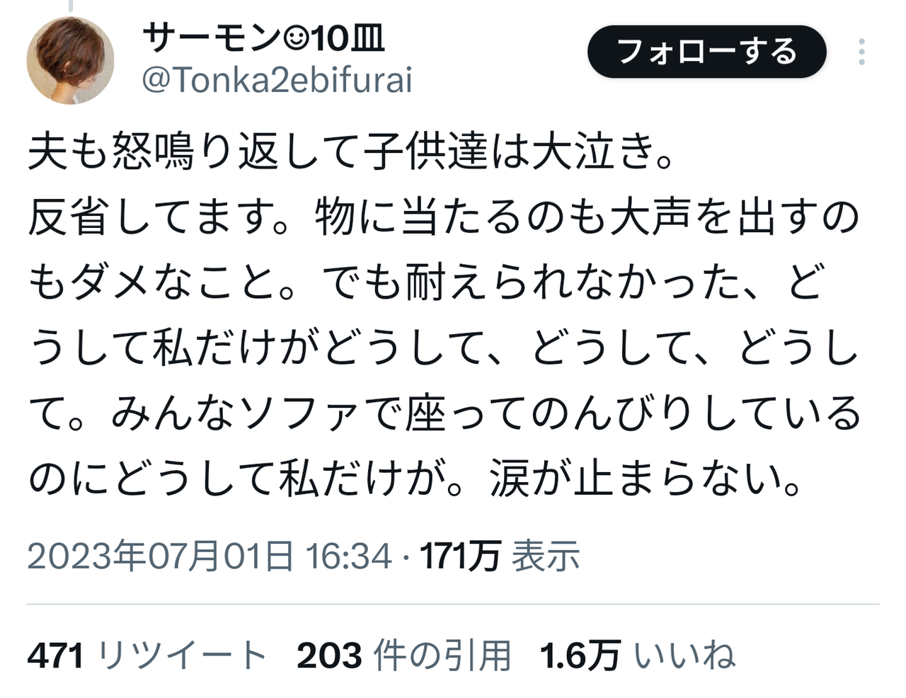 でも夫が子育てしてないとも限らないし、物にあたって大声出した時点でモラハラDV認定されちゃうな子どものことも泣かせてるし