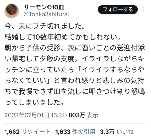 「イライラするなら家事しなくていいよ(家事くらいでイライラすんな)」