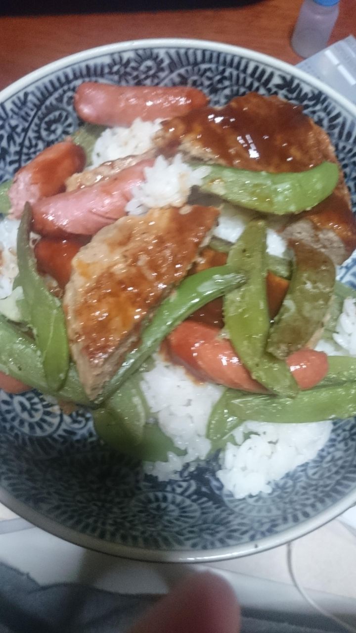 これ残り物をご飯の上に乗せたの?