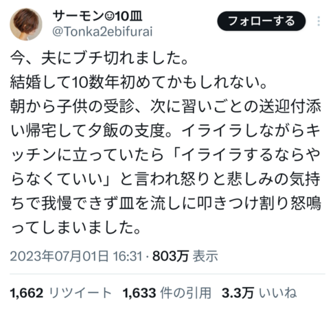 【家庭内DV?】皿投げる妻…理由がしょうもなさすぎて引いたわwwww